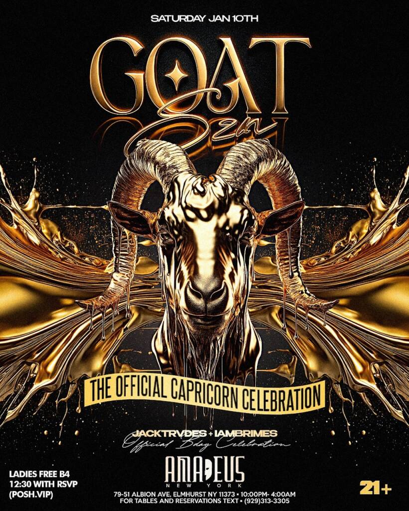 Saturday January 10th 2026: goat season official capricorn takeover at Amadeus Nightclub