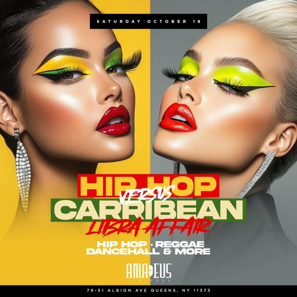 Saturday October 18th 2025: Hip Hop vs Caribbean Libra Affair at Amadeus Nightclub Queens