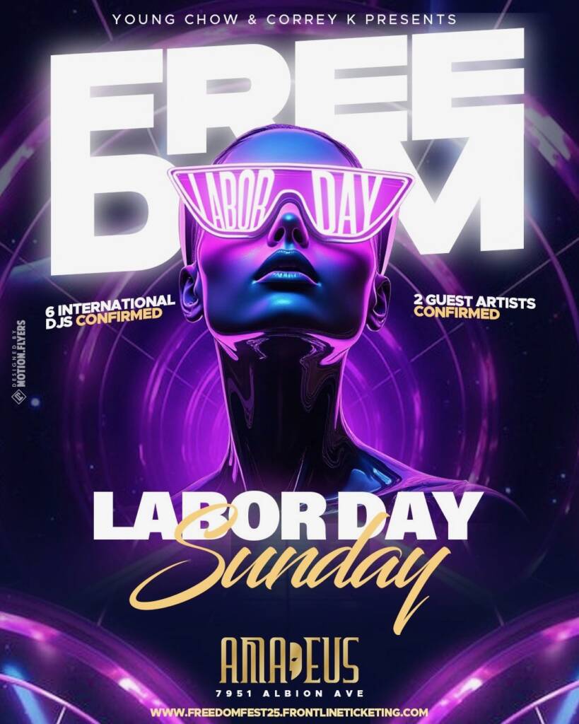 Sunday August 31st 2025 : Freedom Labor Day at Amadeus Nightclub